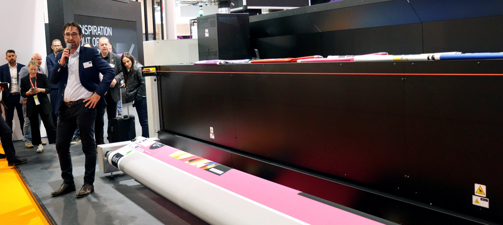 Inden for tekstiltryk blev LF 430 GF, som er et resultat af opkøbet af Aleph, også vist. Systemet printer direkte på stoffet med vandbaseret tekstilblæk, hvilket muliggør mere bæredygtigt og moderne. produktion.