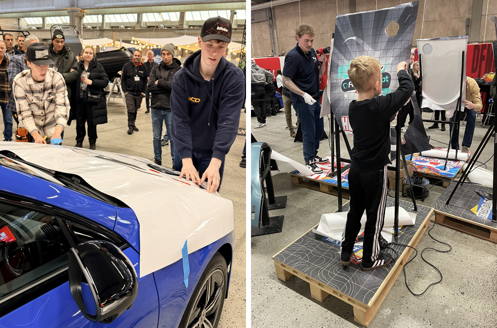 Hexis havde stillet sine ’skjolde’ til rådighed så alle kunne prøve at arbejde med materialet og der blev også afholdt konkurrencer blandt elever fra Skjern Tekniske Skole, som havde stand lige ved siden af. Den gode relation, der blev skabt til netop Skjern Tekniske Skole, udmøntede sig i, at de ’fyrede’ en airbag af, da vinderen af årets World Wrap Masters blev kåret.